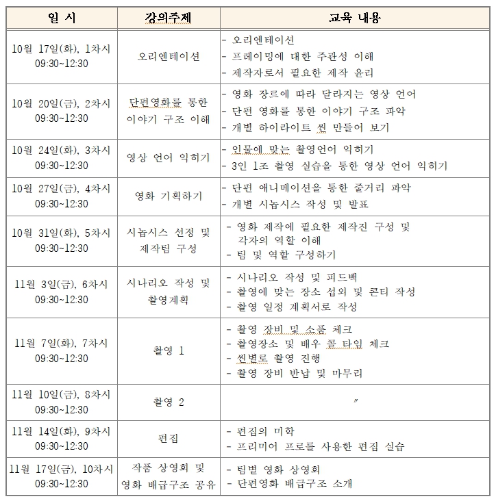교육장소 : 2층 마을방송 스튜디오 및 4층 멀티미디어실