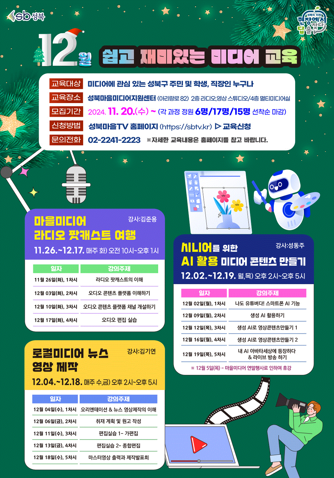 교육장소 : 2층 영상 스튜디오, 4층 멀티미디어실