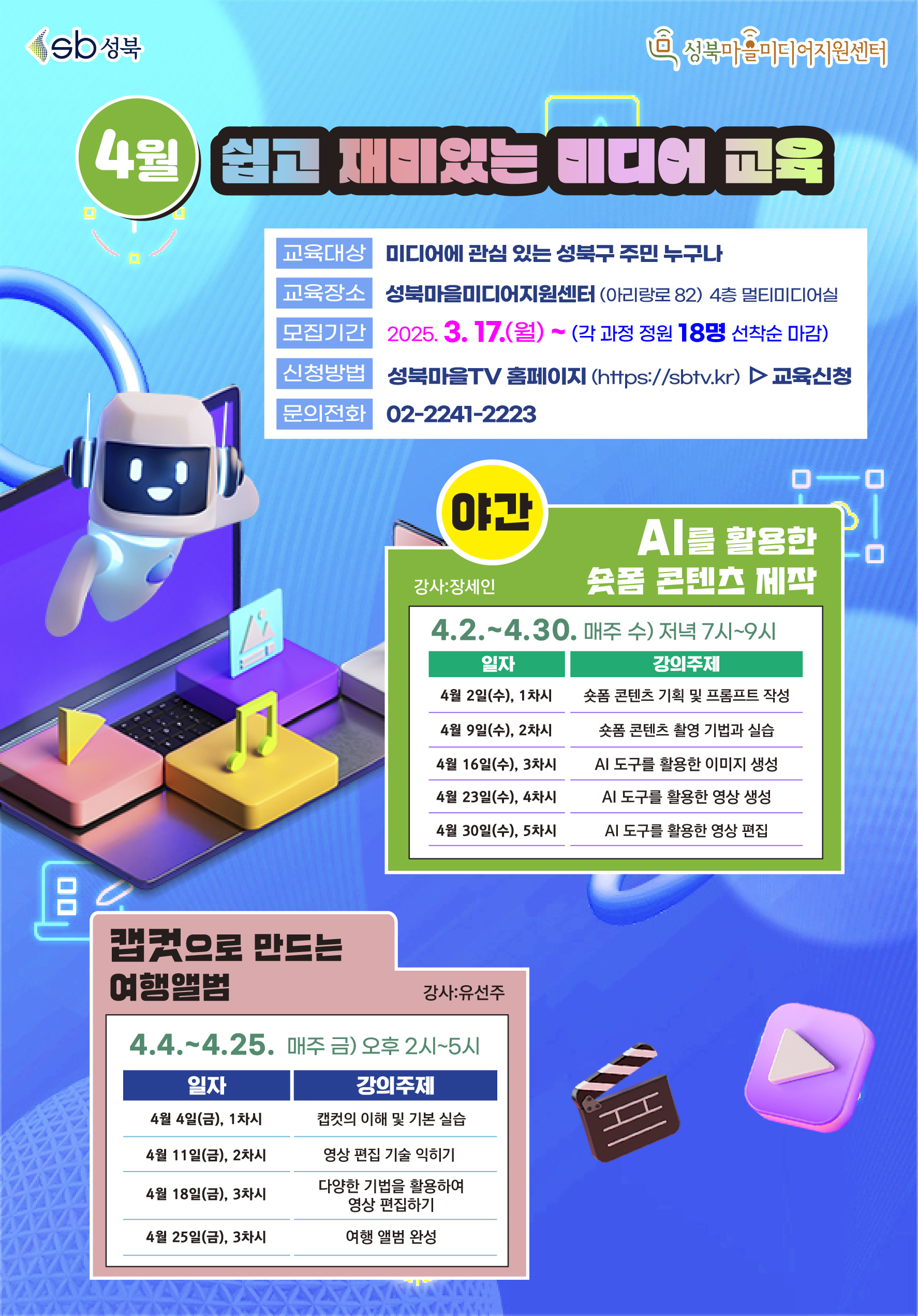 교육장소 : 성북마을미디어지원센터 4층 멀티미디어실