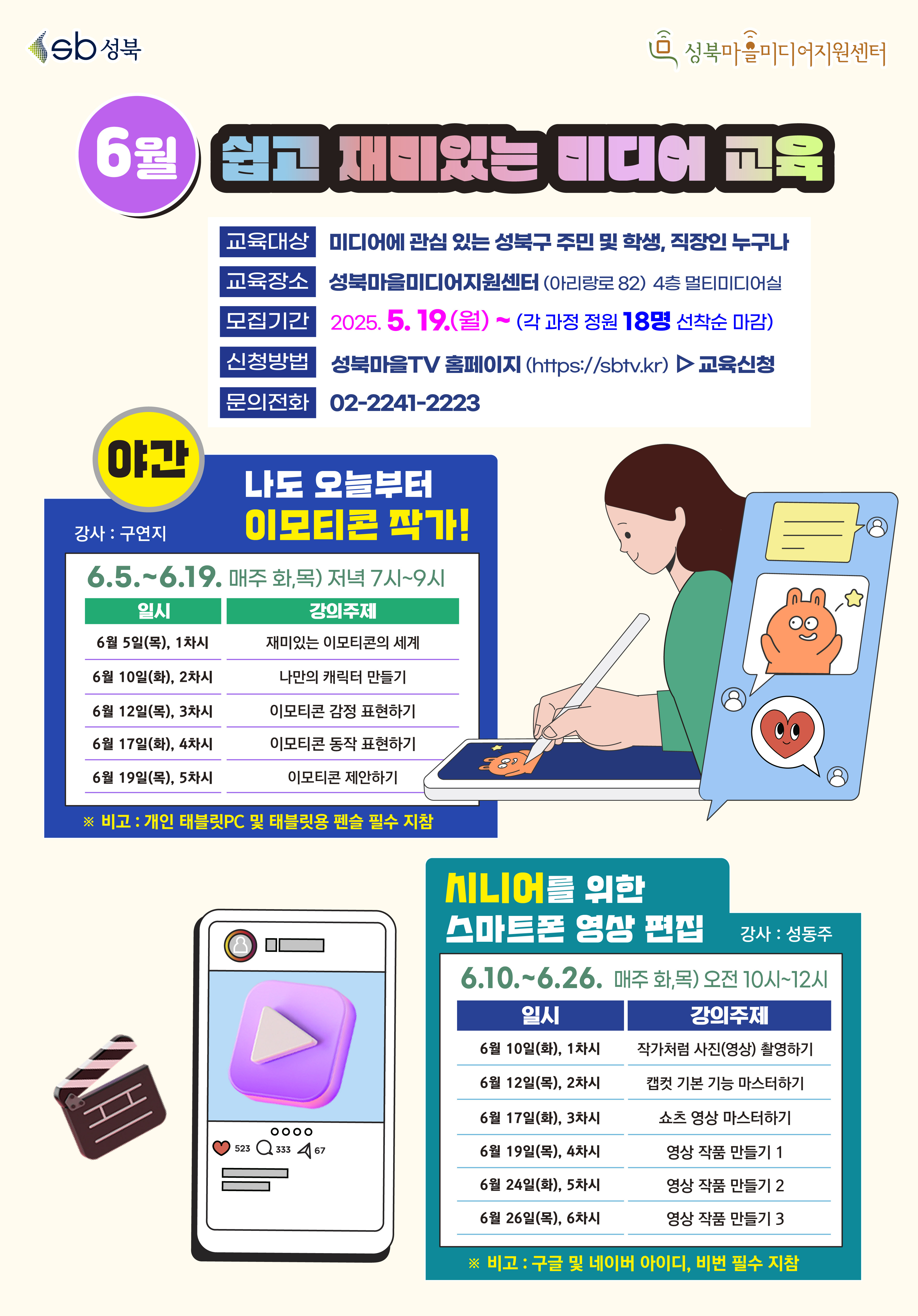 교육장소 : 성북마을미디어지원센터 4층 멀티미디어실